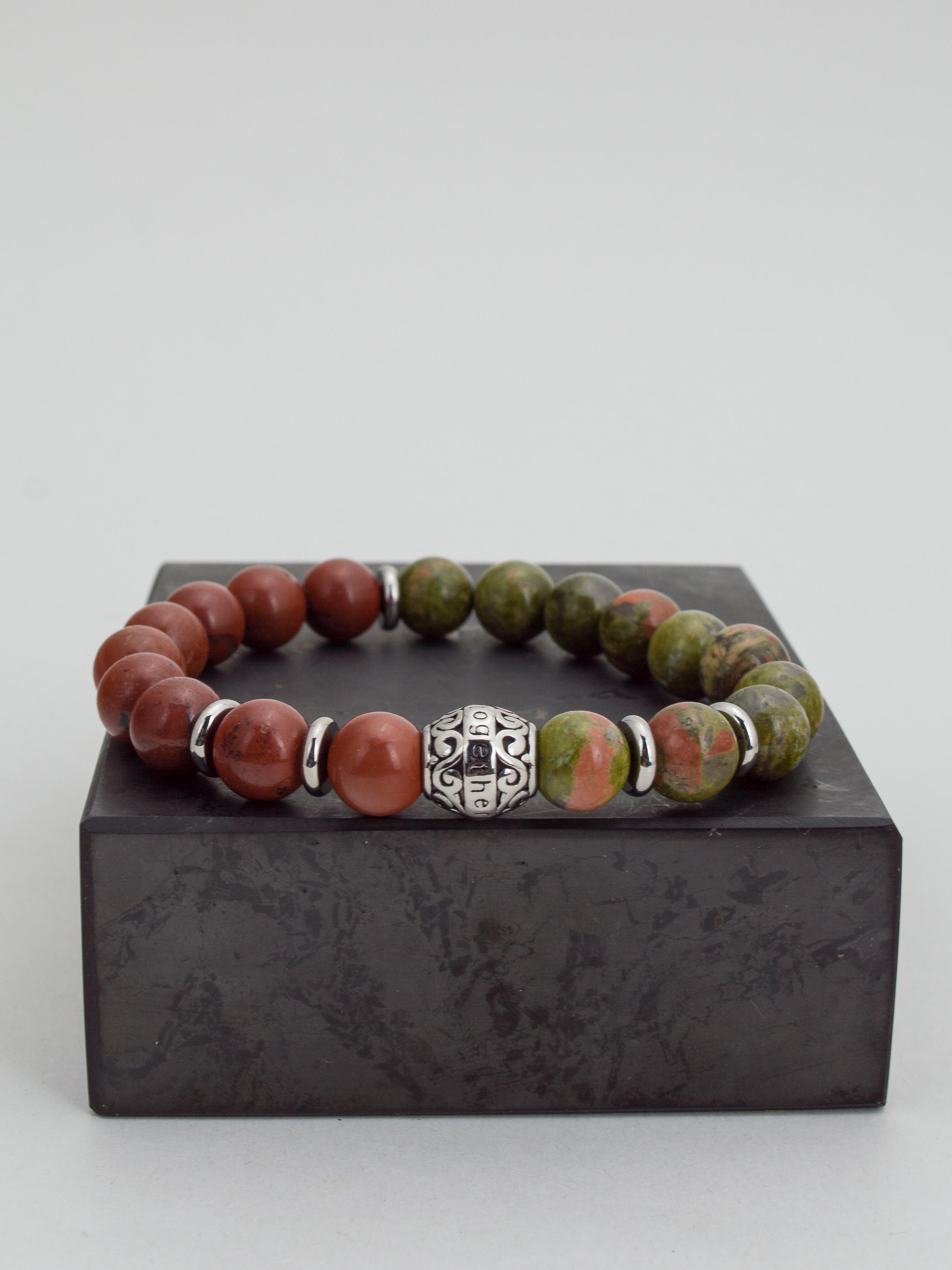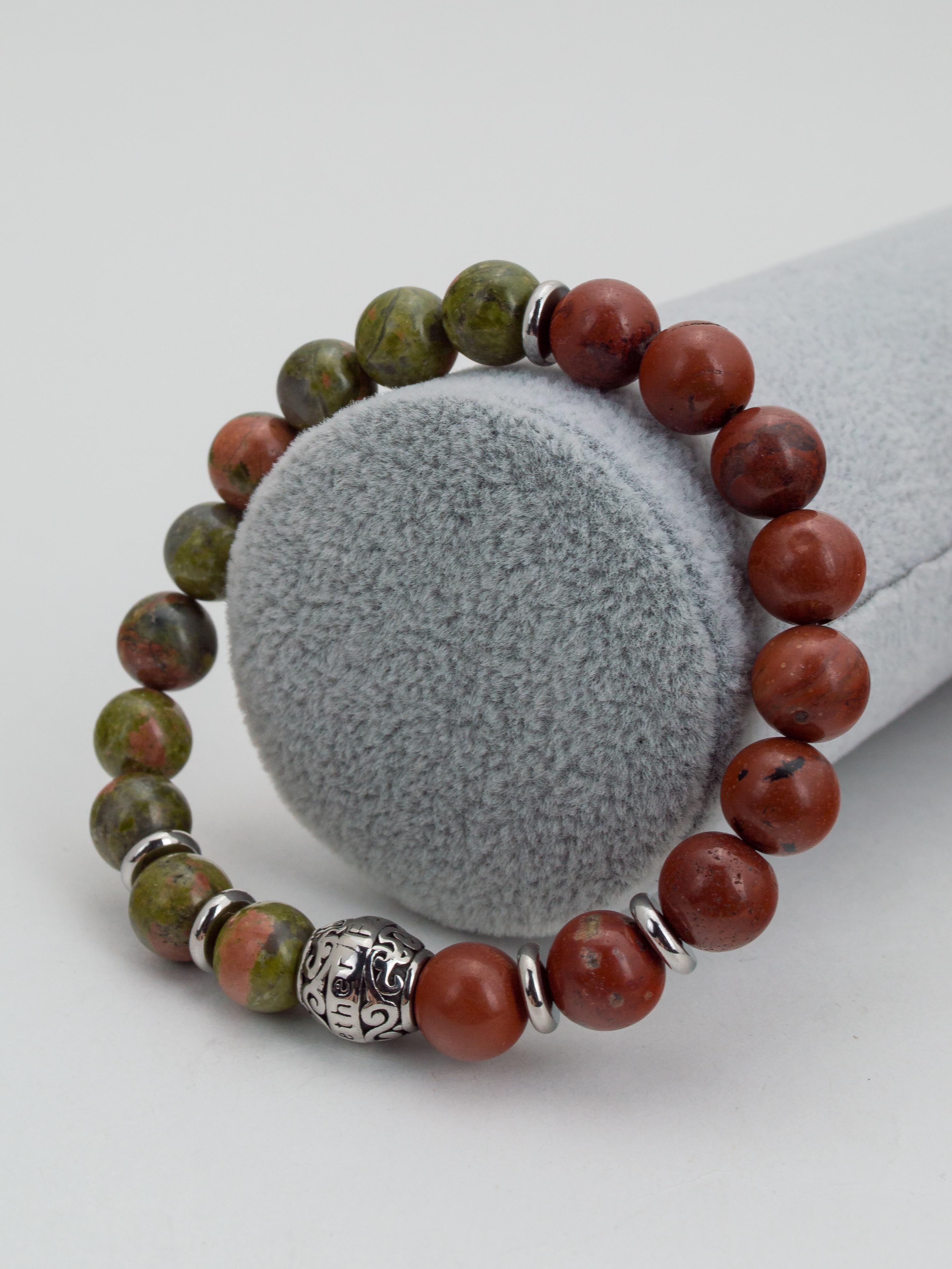 Браслет из натурального унакита и яшмы