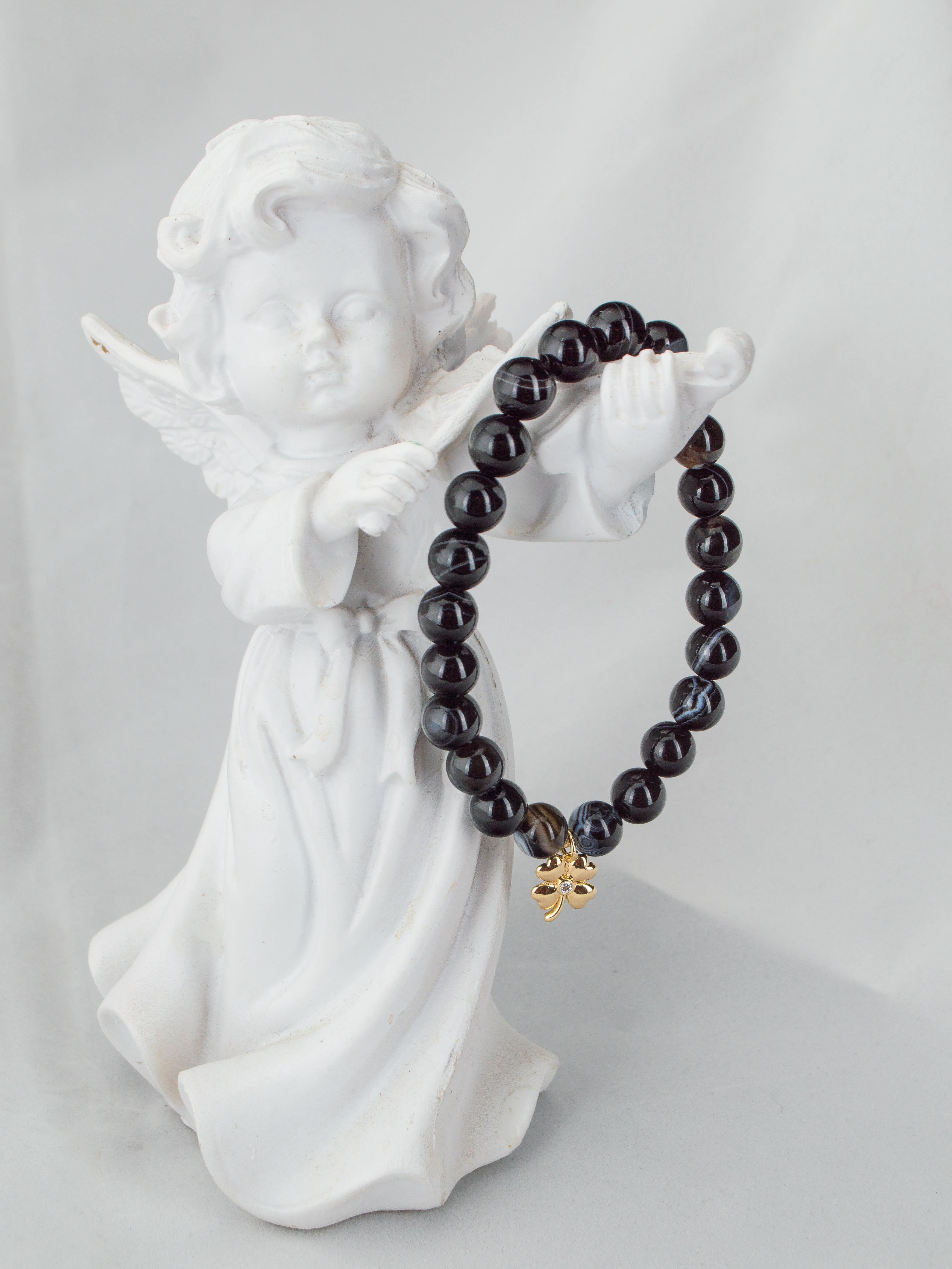 Браслет из натурального черного агата