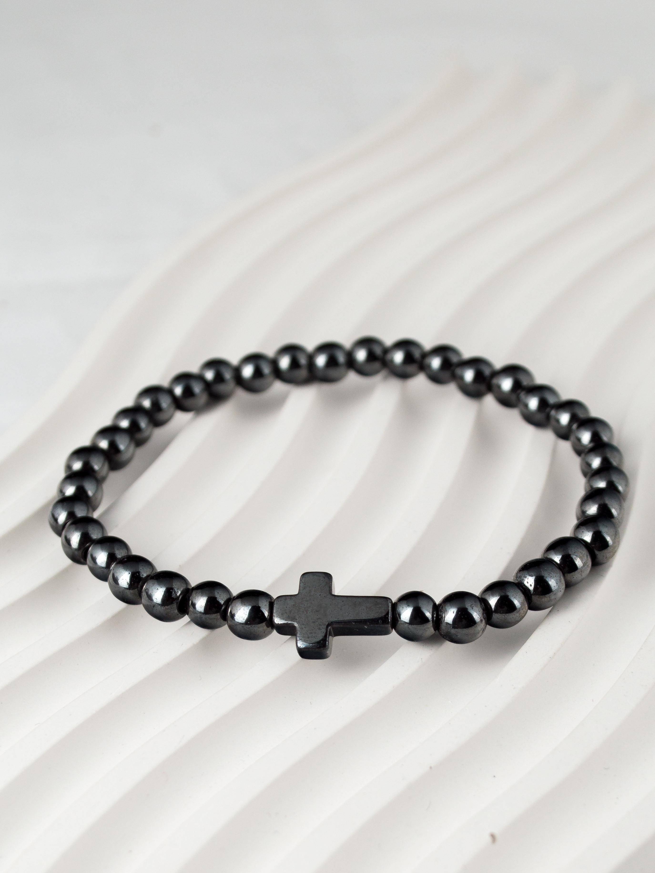 Браслет из гематита с крестом Delacosta2450 ₽3450 ₽Браслет из натурального гематита. Крестик выполнен из гематита.Мужские браслеты