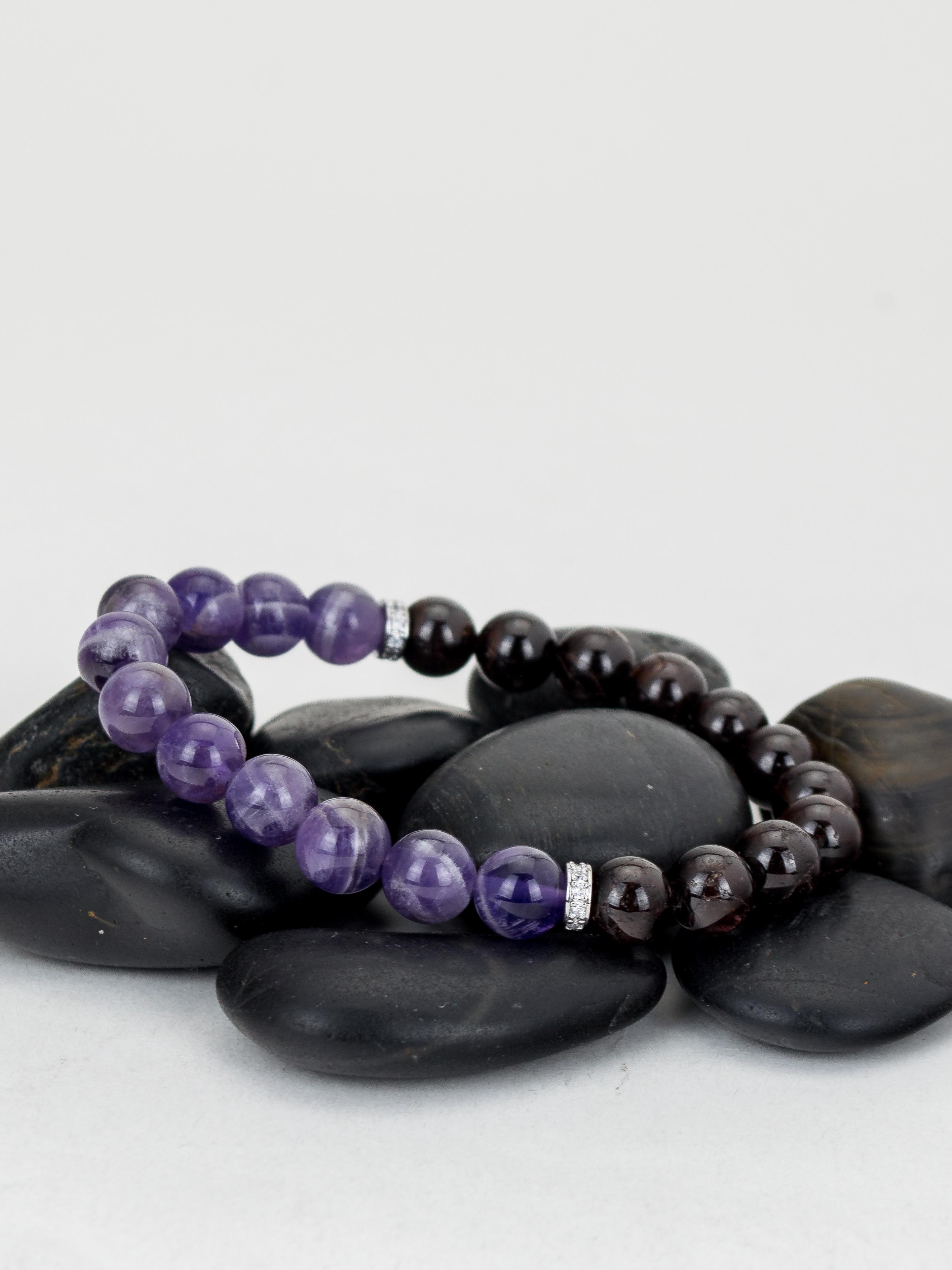 Браслет из натурального аметиста и граната