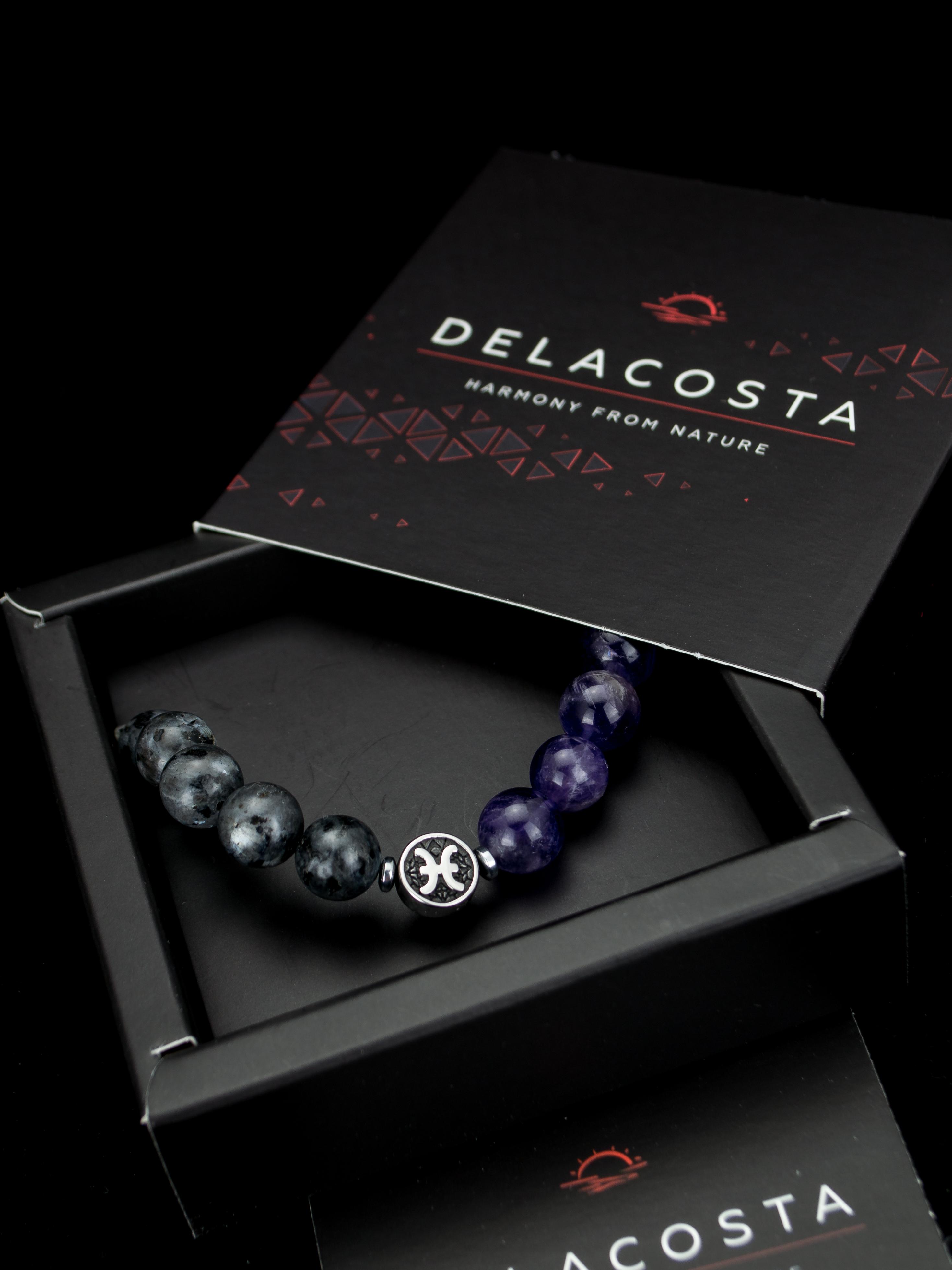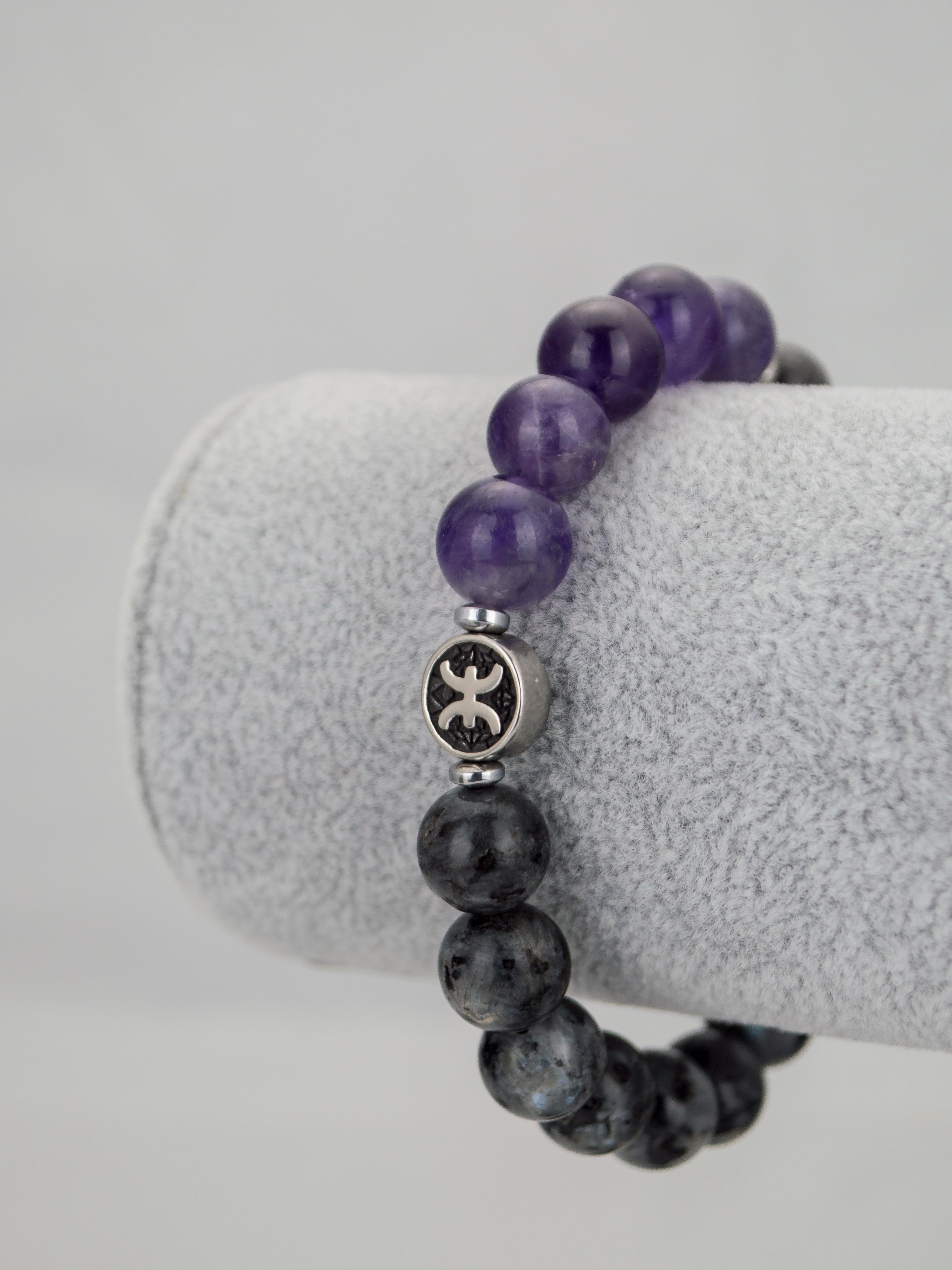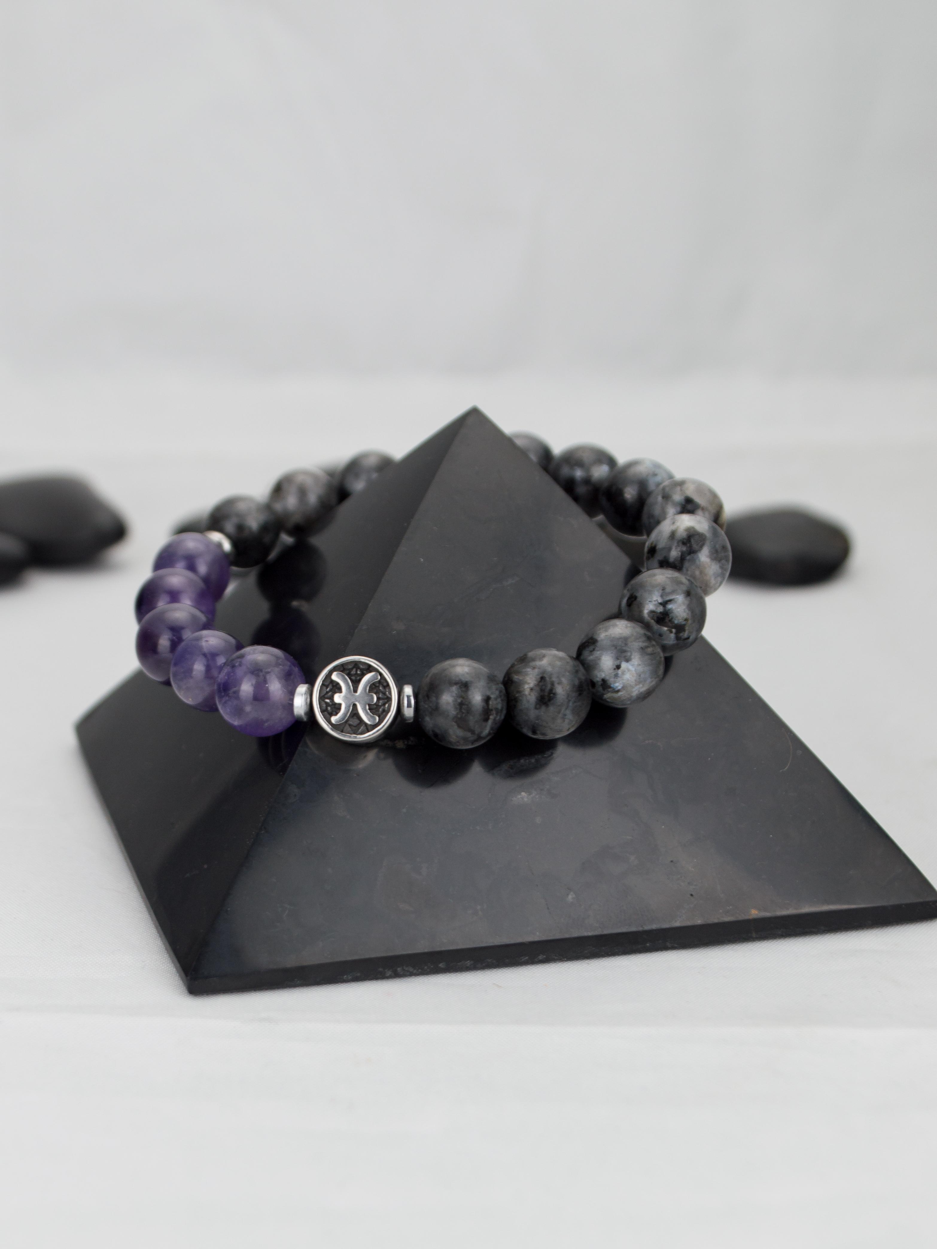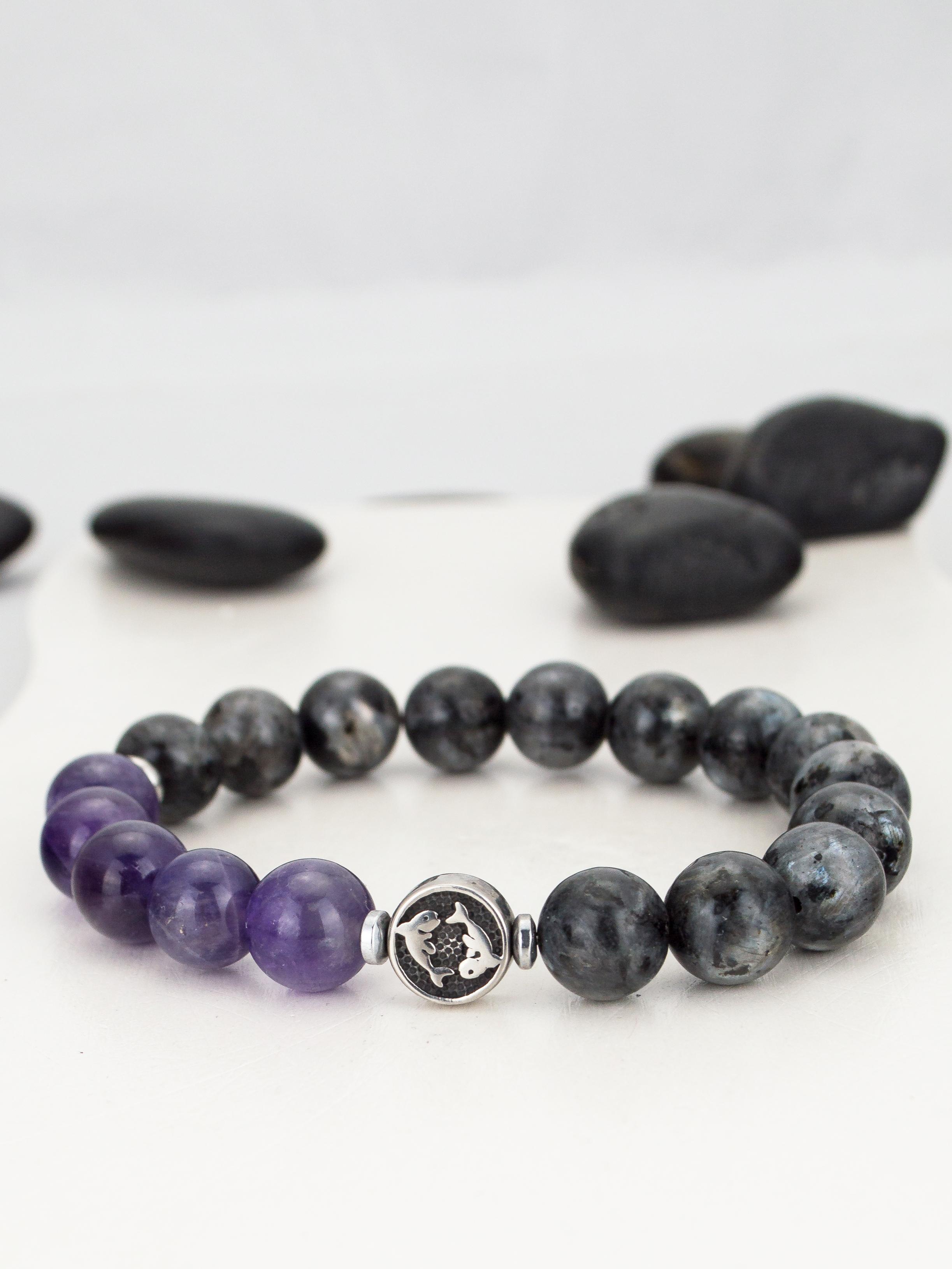 Браслет зодиак Рыбы из лабрадорита и аметист...